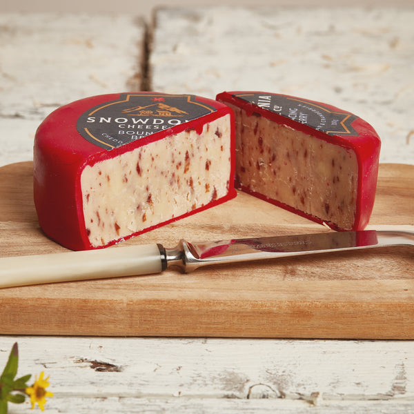Snowdonia Bouncing Berry 200g, Deliciously sweet and fruity Cheddar bursting with real cranberries. A deliciously sweet and fruity addition to your cheeseboard.