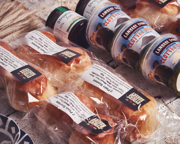 20 x Scones, 4 x Langage Clotted Cream 200g, 20 x Devonshire Tea Sachets